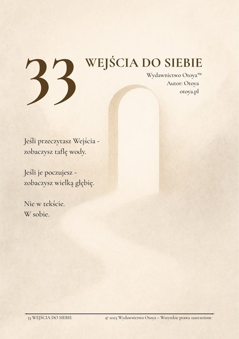 33 Wejścia do siebie to krótkie zdania, które można traktować jako drzwi do Przestrzeni Otoya (ale tak naprawdę to Twój dostęp do samej/samego siebie).