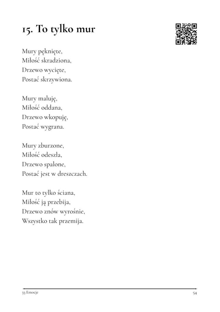 33 Emocje to połączenie poezji, refleksji i małych, codziennych gestów, które pozwalają poczuć własne wnętrze. 33 rozdziały, a każdy z nich składa się z wiersza, zdania w punkt, pięciu pytań i pięciu drobnych zadań do zrobienia. Nie musisz mieć czasu ani specjalnej wiedzy.