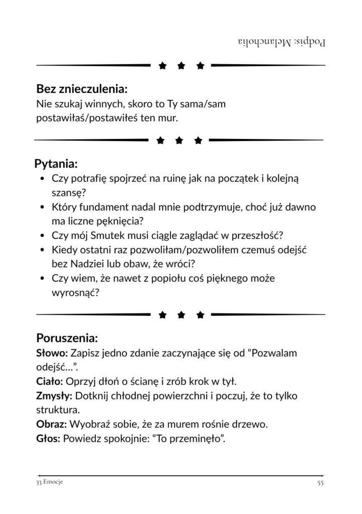 Rozdziały łączą się z innymi produktami Otoya, więc na przykład ta sama „piętnastka” opowiedziana jest z różnych perspektyw i na różne sposoby. Najprościej mówiąc jest to narzędzie, które nie teoretyzuje, tylko pomaga poczuć swoje wnętrze i zrobić kolejny krok w kierunku rozumienia siebie.